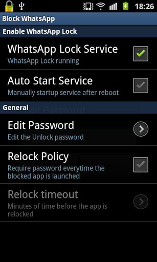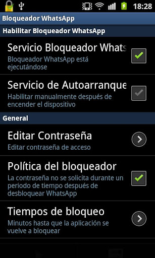 Are you tired that relatives, friends... catch your own phone and afraid of them for accesing to WhatsApp and seeing your private conversations?This application and widget allows you to block access to WhatsApp. The application only will be accessible if you enter the password correctly.The steps are:- Access the application "Block Access WhatsApp" and select the option WhatsApp Blocker Service.- If you want that access to WhatsApp is restricted long after turning the phone, select "Service Boot"- Edit and the password! (NOTE: If you do not set any password, the default will be of 123)- Set lock times if you think that it is appropriateOnce configured, the access to WhatsApp will be protected.Optimized for android 2.x