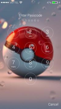 Lock screen with passcode security, iphone style and Pokeball HD background image.