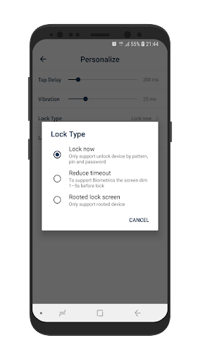 We provide you a easy way to turn on and turn off screen without power button. It's very useful if your phone is broken power button or you don't like using hard key.