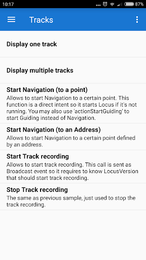 - your app can display multiple tracks in Locus, start navigation or control track recording