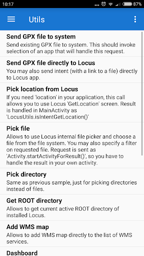 Are you an Android apps developer? Do you have a solution that could benefit from working together with Locus Map? This app shows you a wide range of samples how your app can cooperate with the popular outdoor mobile navigation.
