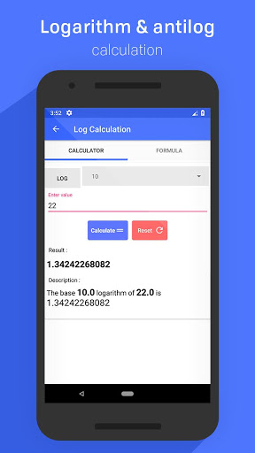 This app calculates log and antilog of a given number. So no carrying books