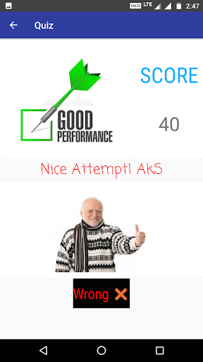Exceeding the time limit will again fall you out of the Quiz with the previous question Score.