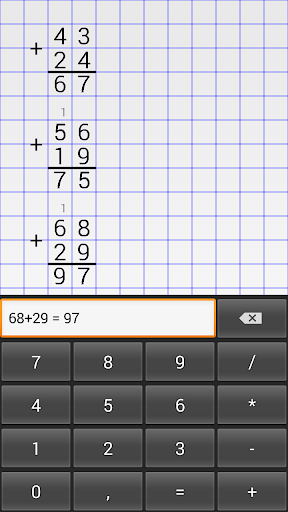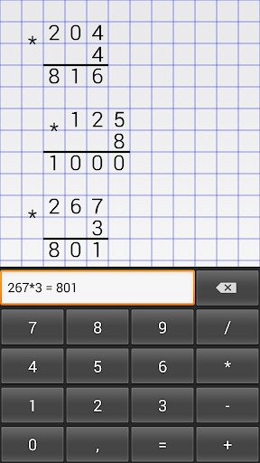 School calculator will teach the correct recording of multiplication operations and division of multi-digit numbers.