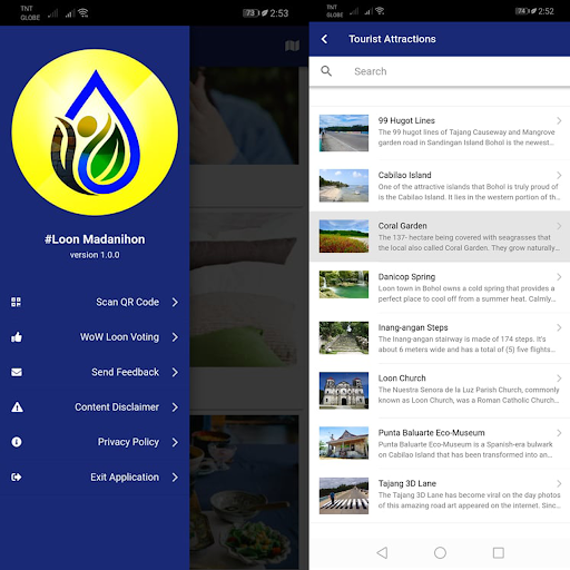 A mobile application that shows the list of tourist attractions and accommodations in Loon where the traveler or tourist can stay and especially the list of resto-bars where people can chill out and enjoy the best Loonanon and Filipino delicacies.