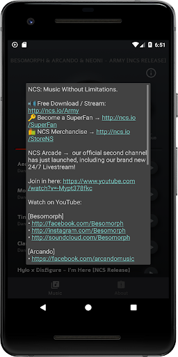 All copyrights and information about the track can be found by tapping the (i) icon displayed on the app.