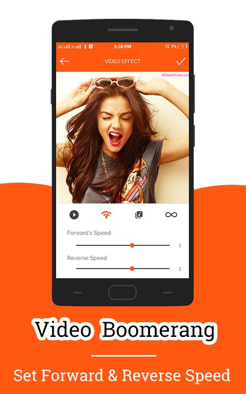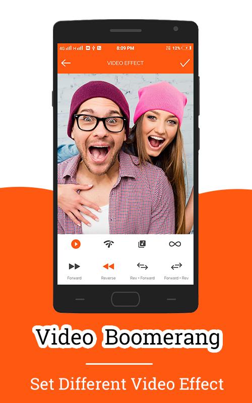 Looping video - Boomerang Video Maker every moment fun and magical. Create captivating mini videos that loop back and forth with a lot of options and features, you can record videos and make them faster or slower, you have the ability to only change the speed of only the reversed (Backward) video part or the original (Forward) part, or both and to also specify how many times the video will loop.