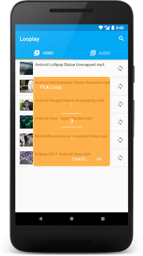 Looplay is a media player that can play video or audio repeatedly. You can specify how many times video or audio played. Looping can be one time, three times, five times, ten times, or continuously. Or you can set custom looping.