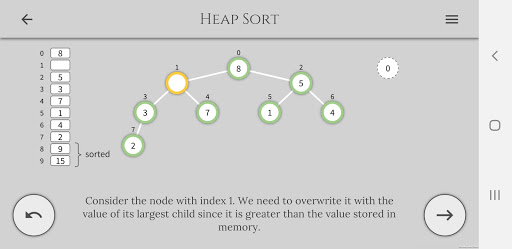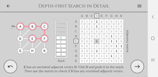 The application provides comprehensible content on the study of computer algorithms with a focus on interactivity and visualization of each step. By using controls the user goes through the algorithm while observing its work.