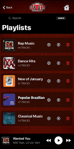 tabs that allow you to create unlimited playlist, search for your favorite artist music, and view exclusive videos.