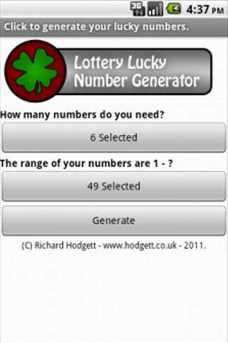 Not feeling lucky, then let your phone do the decidingNot feeling lucky enough to pick your own Lottery numbers? Try the Lottery Lucky Number Generator.Why not? Its39; FREE