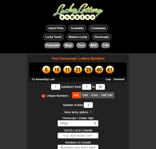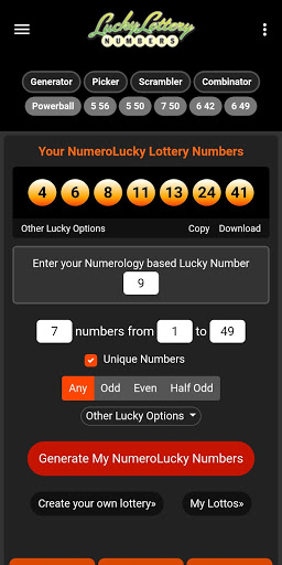 Lucky Lottery Number Generator app by LotteryNumberGenerator.net