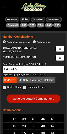 - lets you generate random lottery numbers, scramble lottery numbers, generate multiple combinations, and truly lucky ball shuffler for a magical touch.