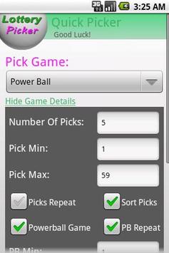 Allows you to see winning numbers(USA & UK) and generate quick picks for all of the lottery games.