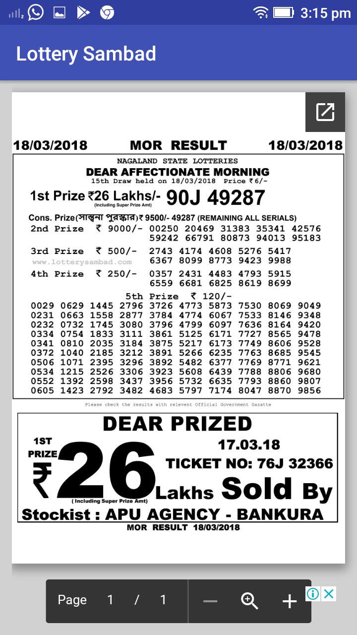 Quickest Lottery Result Viewing application ever. You do not need other applications to download and open the result pdf file. Just tap and watch.