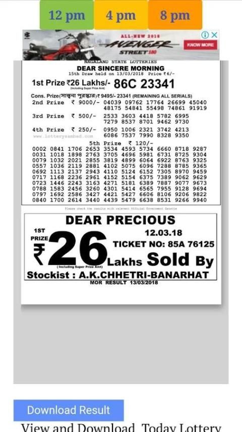 now get nagaland lottery result without downloading just click above the result time 11am,4pm or 8pm to view lotterysambad result.