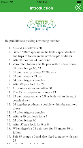 Lotto Stud Pick 3- is an app designed to help every level of pick 3 player improve your chances of picking a winning number. Winning grids are provided so that you can cut down on your workout time or you can let us pick the numbers for you! Our app is proven to pick winning numbers in all states using the grid plus 15 other workouts. I would say good luck but you don’t need it cause you just made your own luck by downloading Lotto Stud Pick 3!!!