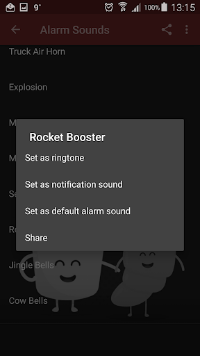 - Tap and hold to set the sound as a ringtone, notification sound or alarm sound.