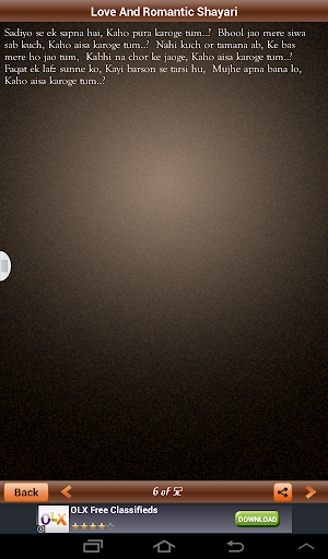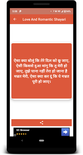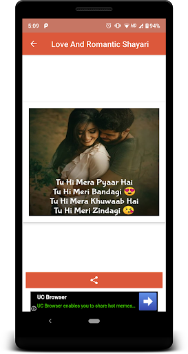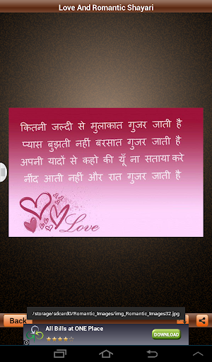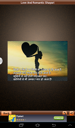 "Love Shayari" or Romantic Shayari section of this site is a very beautiful concept to share the beauty of thought about Love and Romance called Shayari on Love. So don't waste your beautiful thoughts and shayaris but share them with us so that world can see your thinking and truly in your way. We provide a platform where you can share your love shayaris with world and we encourage all types of love poetry in different languages like Urdu, Hindi, Punjabi etc. So, what are you waiting for, Just start posting your jove shayari. If you like any shayari you can send it to your friends. Also don't forget to rate these shayaris on love.