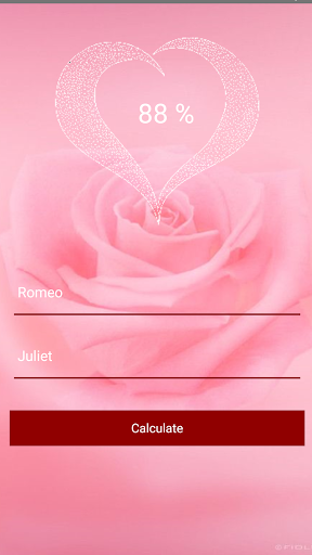 Love Calculator is the way to find out percentages of you and your partner.Fill in both names in the two text boxes below, and press Calculate and Love Calculator will calculate your Love percentage.