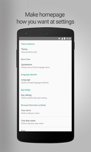 Customizable Home Page Screen : You can choose one of your photos or a theme in the application for your home page.