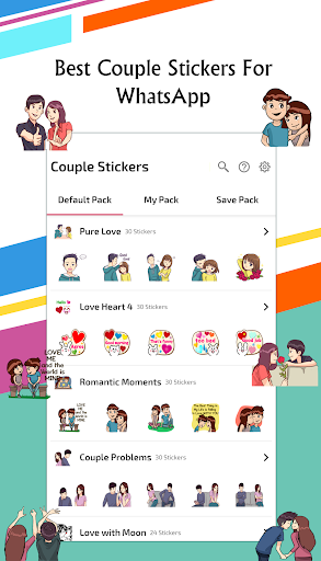 Download very best love couple stickers for whatsapp app and enjoy sharing whatsapp stickers on your daily conversations!