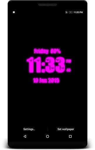 Love Digital Clock Live Wallpaper that displays current time, date and day of the week. All date and time formats are supported.