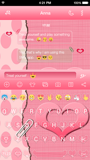 Whoever wanna a simple and Love Heart Emoji keyboard theme, please try out this Love Heart Emoji Keyboard Theme specially designed for Pink lovers. Enjoy funny typing with Love Heart Emoji Keyboard Theme.