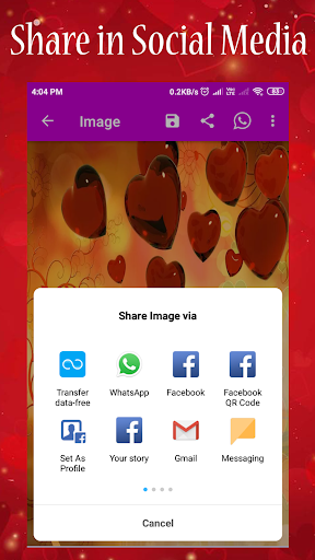 You can easily share Love pictures, status through this application in all social Media(Networks).