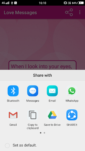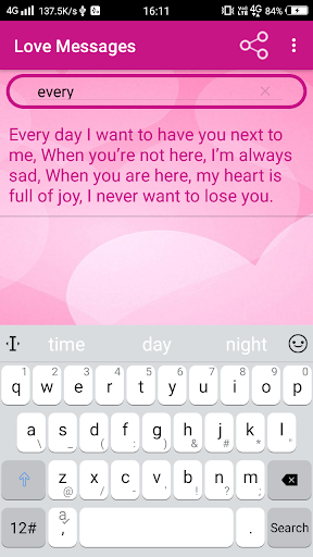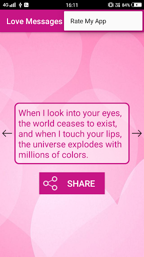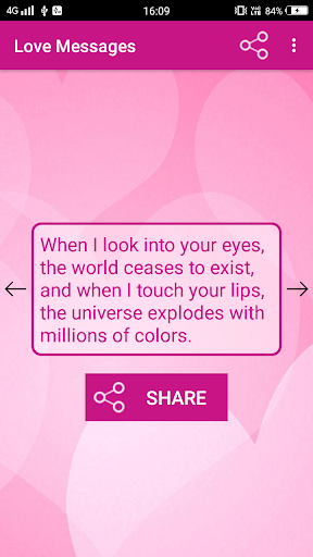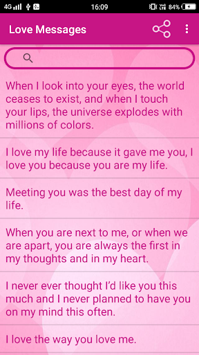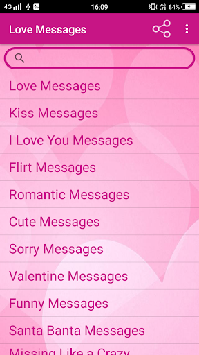 Romantic Love Messages App is for expressing your love with your loved ones. Express your love becomes quite easier in this mobile era with the Love Messages for Whatsapp & SMS, as you can simply send a Whatsapp text or SMS to your love. A very good and precomposed collection of Love Messages.