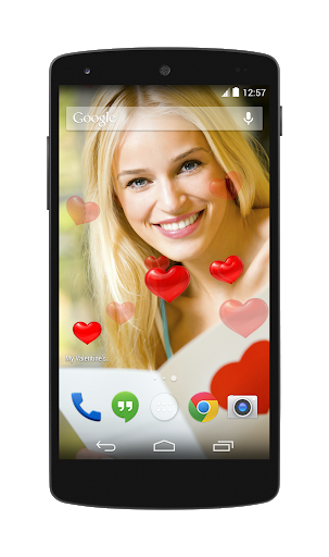 Photos of your beloved on the desktop of smartphone surrounded by hearts and kisses. Perfect expression of feelings on Valentine's Day and any other.