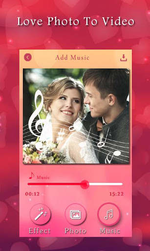pictures, photos and whatever music you like become short love video with many love frames,