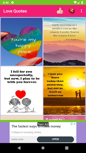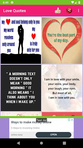 This quote app is a single point of utility for sending splendid collection of deep and heart touching love quotes to your dear ones at the dawn and dusk of the day to convey your greetings to them. This app includes pictures for different sections such as Romantic Love Pictures Quotes, Crush Quotes and Friend Quotes