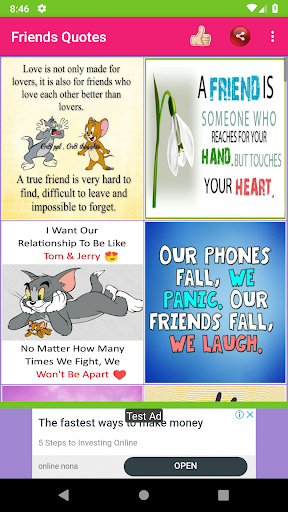 Show your friends how much they are loved and appreciated with these best friend quotes. Share friend Quotes to your true friends via social platforms such as whatsapp, fb, twitter, etc,... You can set any image as your smartphone wallpaper with single click.