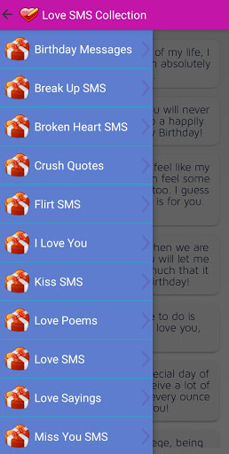 Completely offline and free SMS book containing more SMS messages collection, Love status collection. The best of love sms, brilliant quotes and romantic messages.