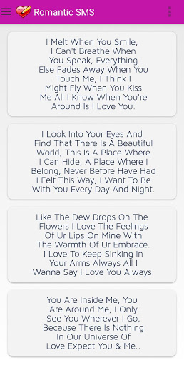 Love Messages helps to flirt with your love using witty love messages, flirty sms, and romantic pick-up lines.
