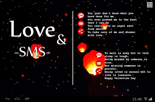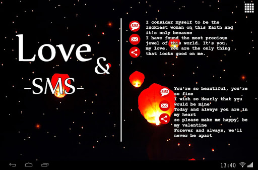 Live wallpaper Love SMS Messages can be used in the horizontal and vertical positions of the device.