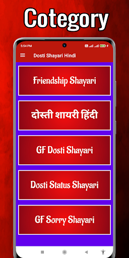 This Dosti App Hindi app contains, Friendship Shayari, Dosti Status, Girlfriend shayari, Sorry Shayari, Miss You Shayari etc.