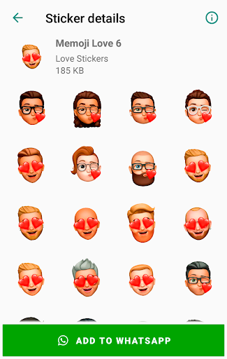Love Memoji Stickers WhatsApp is a collection of the best love stickers that can be easily shared with friends and on social networks.