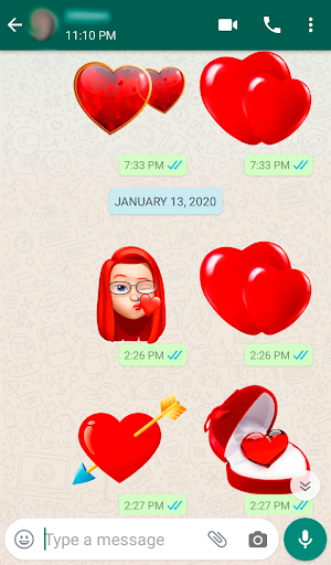Provide you a series of beautiful love stickers to make you chat and make your chat look romantic and colorful. So you can send cute and romantic love and memoji stickers directly on WhatsApp. You can send wonderful loving messages to lovers and friends without having to pass lengthy content.