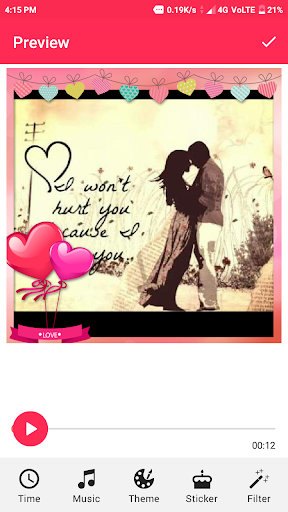 Love Video Maker helps you to make your sweetheart happy in a best way.