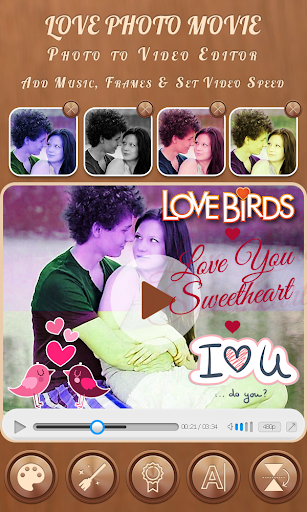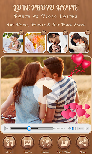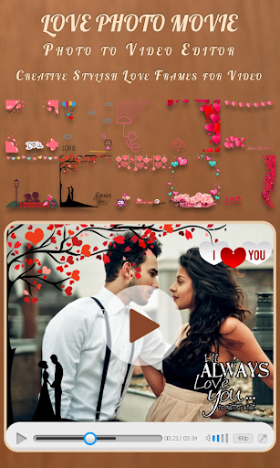 Love Video Maker with Music can help you create your our self video Love Video Maker for you, your lover, your girlfriend. Love Video Editor with Music very easy to use. You can make video with pictures and music from gallery.