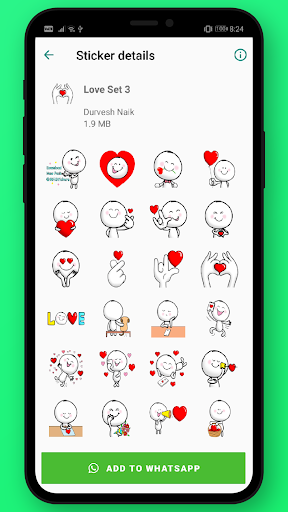 The love stickers for whatsapp app has easy to use functionality with one tap add to whatsapp option.