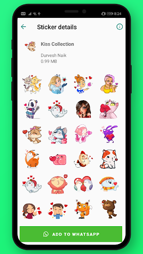 It has over 150 Stickers for kiss, romantic, love etc topics. You will never feel short of stickers with this app.