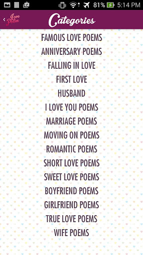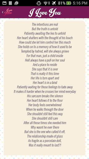 Every people like poems about love, yes everyone. Not only contains poems for him, this app also contains many love poems for her. Man, download this app and send to your girlfriend / wife now.