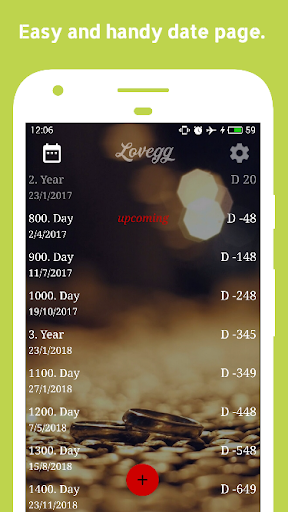 Lovegg once records the day you met with the love of your life and provides you with reminders both on special days and on the specified date. At the same time, thanks to the day counselor, I am now confused by the question of how many days together with my girlfriend are together. Leave your relationship calendar, Lovegg tutsun, you see the pleasure.
