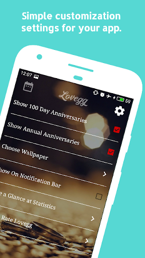With Lovegg you can keep the memory of the most special days you live with your partner, you can set how many days it will take to remind you. Once you have entered your anniversary and forget it, Lovegg will fulfill your anniversary counters and relationship counters successfully by reminding you before time.