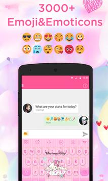 Lovely Pink Kitty Keyboard is one colorful keyboard skin designed for Eva Emoji Keyboard. This animated keyboard(Eva Emoji Keyboard) can types more than 800 Emoji and Emoticons, lots of smileys and cool symbols and lots of Gif animation and various font style and you can DIY Gif and photos from Gallery or take photos immediately. You can set your own photos or baby photos as keyboard background-my photo keyboard.