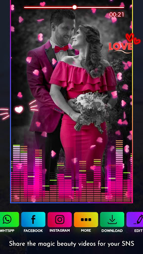 your choice video clip from amazing Wave effects. Lovely Wave Music Video Maker of your own pictures and share your feelings with your love using Social media apps for free.