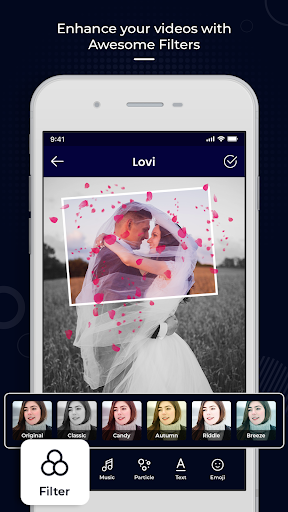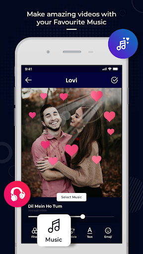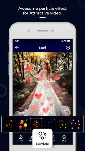 You can add partical on your image. Edit photo to video and add music in lovi beat video status. Add image filter and make video status in lovi. You can change music any video in music video status maker.